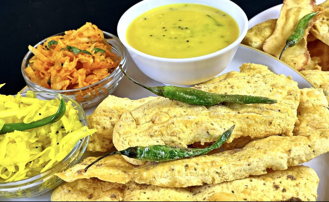 Serve the crispy fafda hot with green chutney, tamarind chutney, or alongside papaya salad.