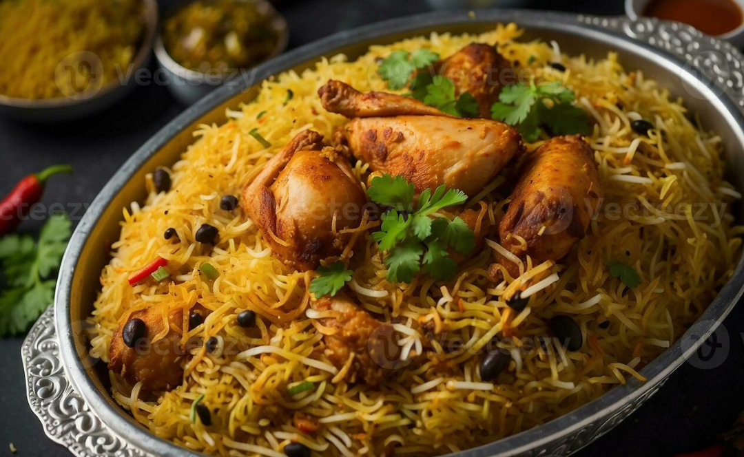 Serve the Hyderabadi Biryani with raita, salan (a tangy gravy), or plain yogurt.
