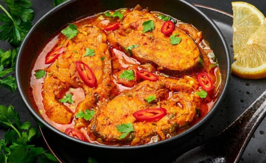 Marinate the fish: Rub the fish pieces with salt and turmeric powder. Set aside for about 10-15 minutes. Fry the fish: Heat mustard oil in a pan until hot. Carefully add the fish pieces and fry until they are golden brown on both sides. Remove and set aside.