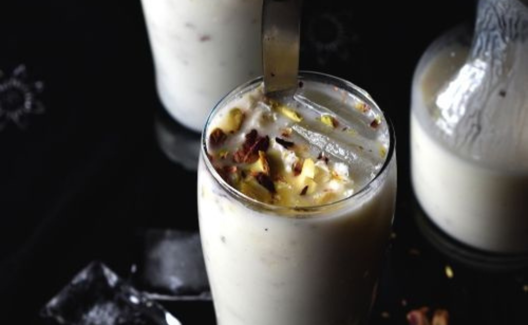 Garnish and Serve: Pour the malai lassi into tall glasses. Garnish with chopped nuts, saffron strands, and a spoonful of fresh malai or cream on top.