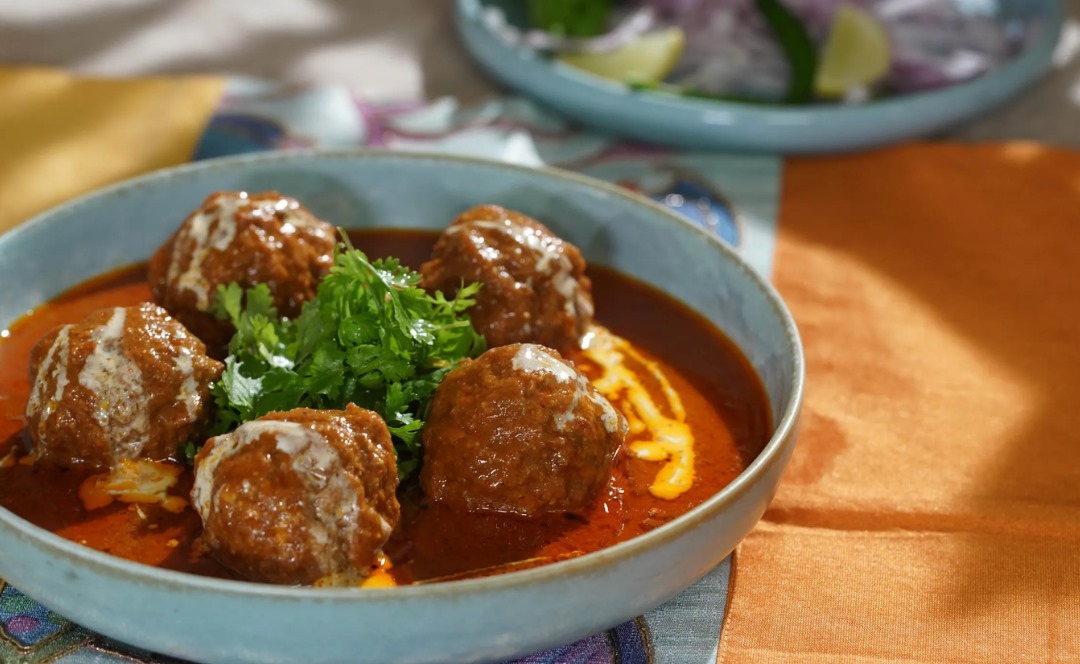 Boil the minced mutton in a pressure cooker with a little salt and 1 cup of water until soft. If any water remains, dry it on low flame. Add ginger paste, garlic paste, red chilli powder, curd, gram flour, turmeric, and salt to the boiled mutton. Mix well and knead the mixture to make it soft. Form round, smooth balls (koftas) from the mixture.