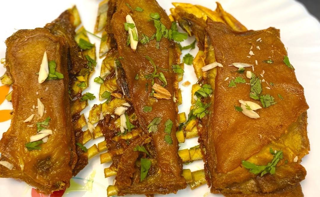 Heat ghee or oil in a pan over medium heat. Fry the cooked ribs until they are golden brown and crispy on both sides.